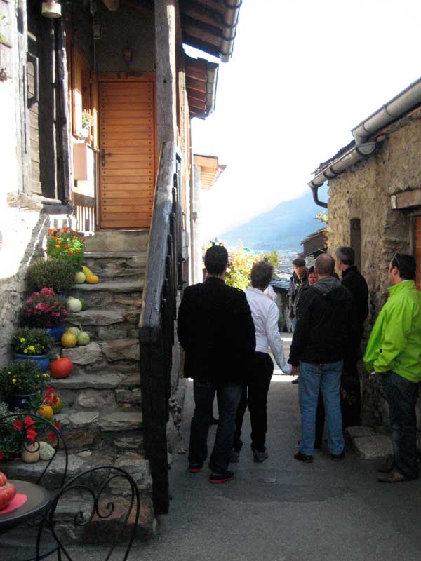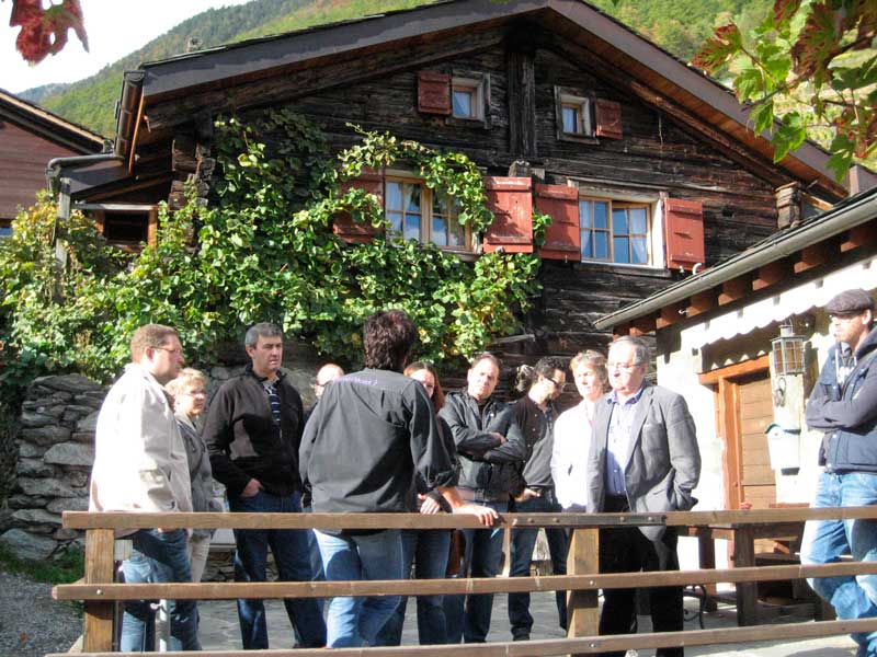 Plan-Cerisier, magnifiques paysages sur les hauteurs de ce petit hameau par un soleil d'automne qui faisait rayonner les couleurs. Madame Besse nous accueillait au « plus petit mazot-musée de Suisse » où les anecdotes nous fût conté et raconté sur les jolis noms de ces ruelles rappelant « Paris » et les chamaillades d'antan, avec en plus un panorama extraordinaire sur Martigny. Florian Besse, vigneron du lieu, nous proposa une dégustation de ces meilleurs cru sous le soleil valaisan.