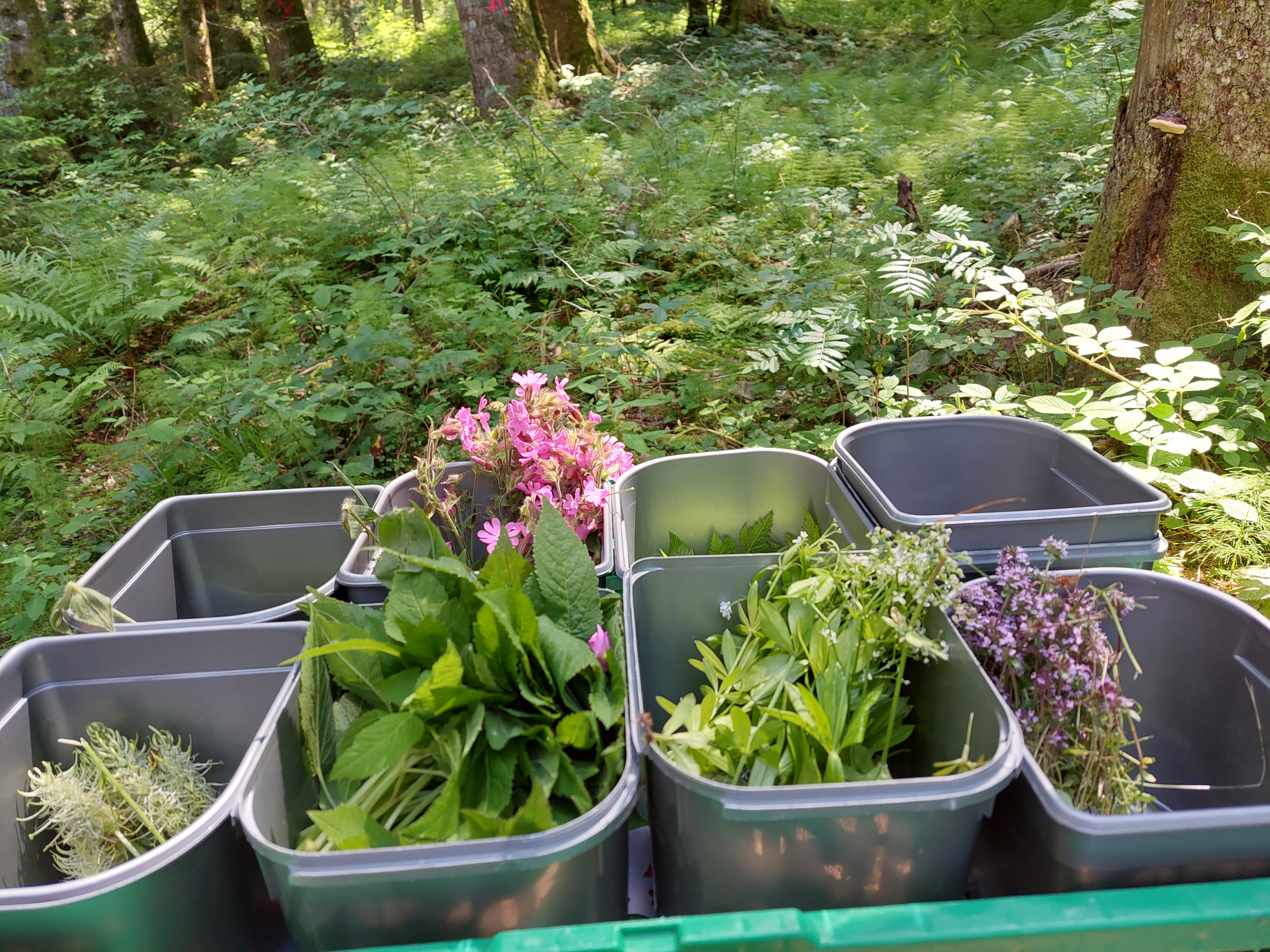 De là, nous sommes descendus à travers champs et forêt, pendant que Joël nous a montré, expliqué l’utilisation et donné à déguster les plantes que nous avons trouvé le long de notre chemin : ne pas confondre la berce-du-Caucase (toxique et donnant des brûlures !) et la Berce commune, le goût acidulé « Granny Smith » de l’Oxali, le cumin des prés, le lierre terrestre (pour beaucoup une mauvaise herbe au jardin), et que où il y a de l’ortie (soupes, quiche, salades) - il y a aussi le plantain (qui calme les brulures de l’ortie !), ne sont que quelques aperçus.