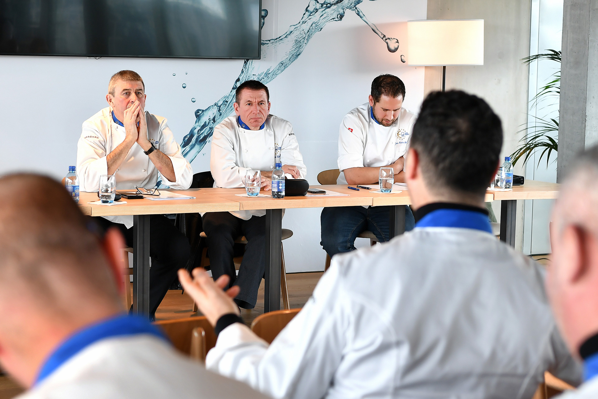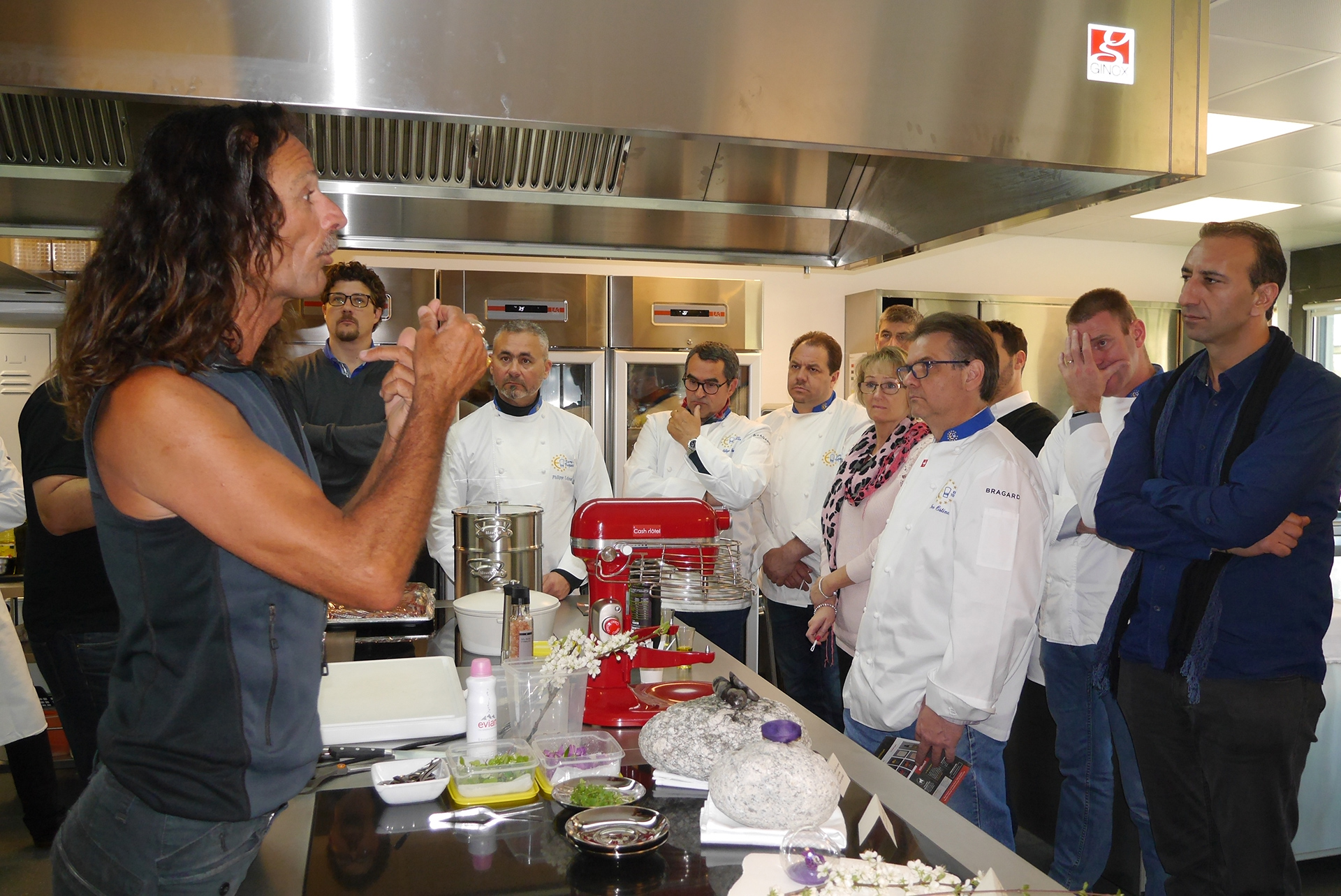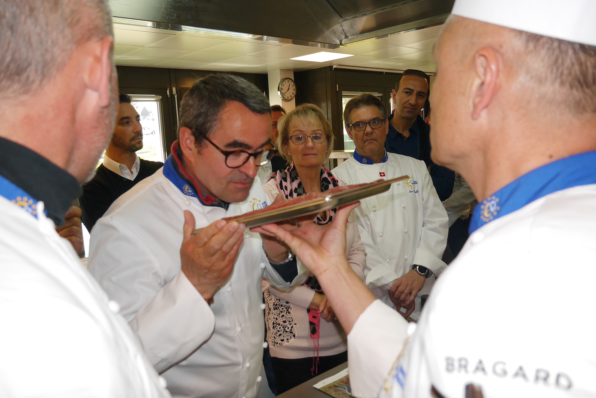Les chefs Guillaume Gomez du palais de l'Elysée, Michel Roth de l'Hôtel Ritz à Paris et de l'hôtel Président Wilson à Genève, membres du « Comité des sages » nouvellement élu, ont fait une intervention pour rappeler le caractère spécifique de notre association qui est la défense des produits du terroir à Bruxelles.