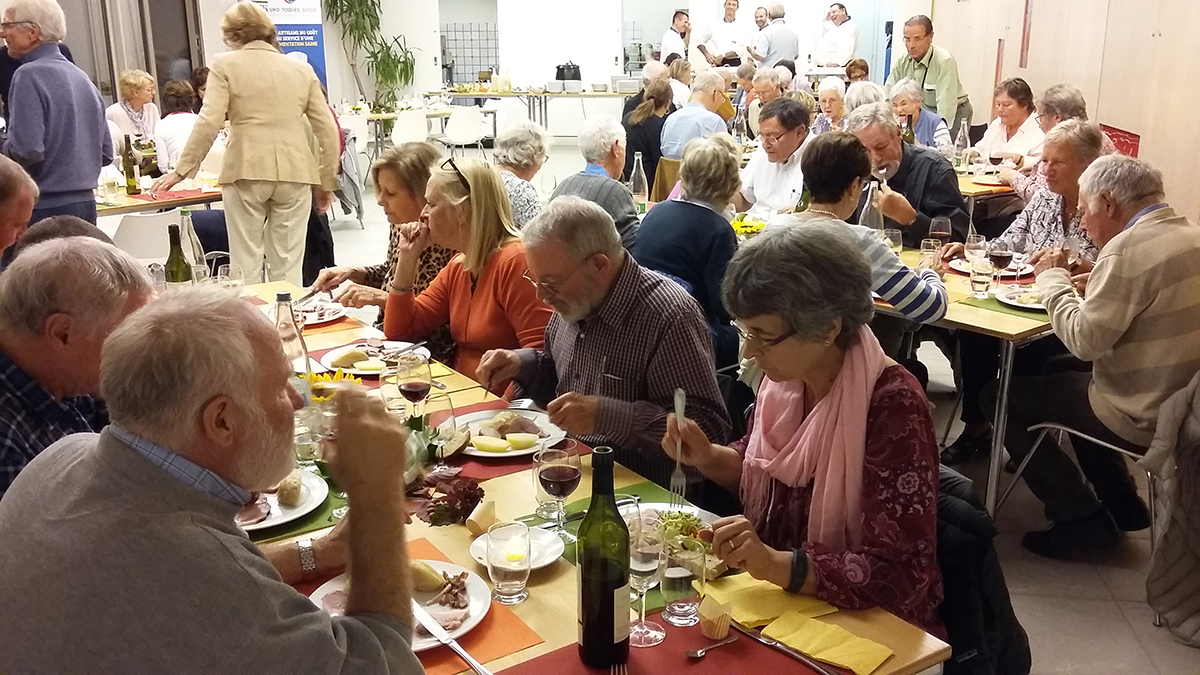 Tout le monde se retrouve à l'apéritif pour un échange entre membres et partenaires. Lors du repas, un couteau Suisse Victorinox marqué aux 20 ans de notre association et le livre de Monsieur Anton Mosimann dédicacé et personnellement remis à chaque membres et partenaires.