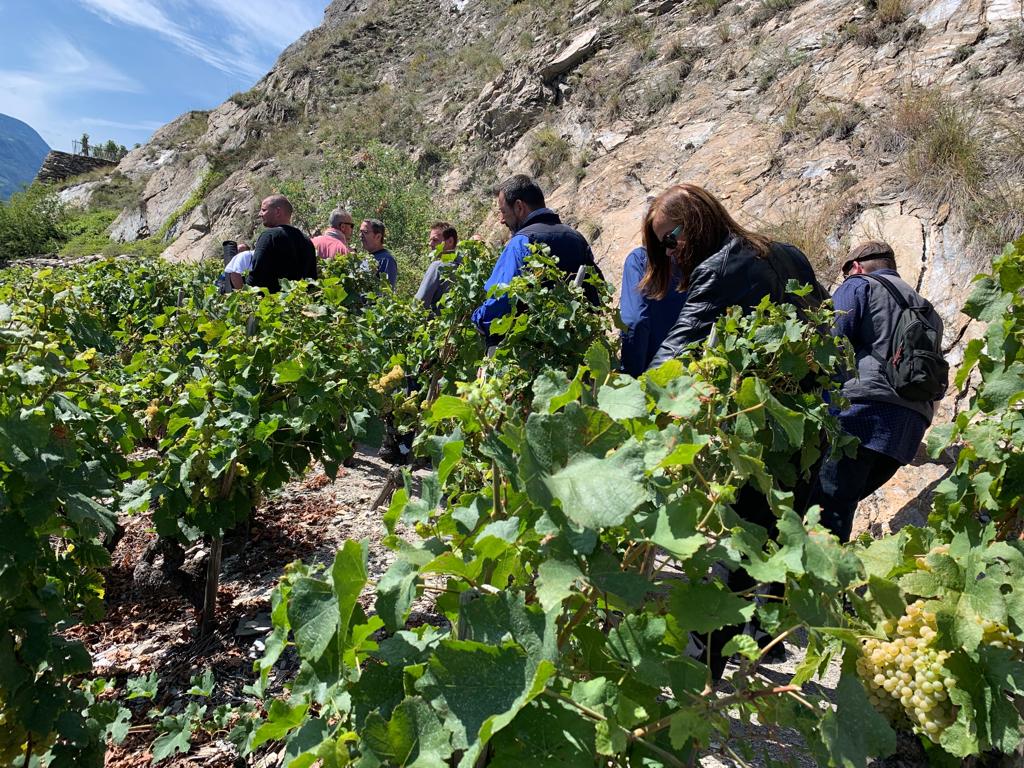 Gilles Wannaz nous a ensuite accueilli dans son Domaine Wannaz pour une agape dînatoire autour de ses vins cultivés en biodynamie. Il nous a fait partager son univers créatif et original avec des préparations viticoles et culinaires issues des produits de cette magnifique région.